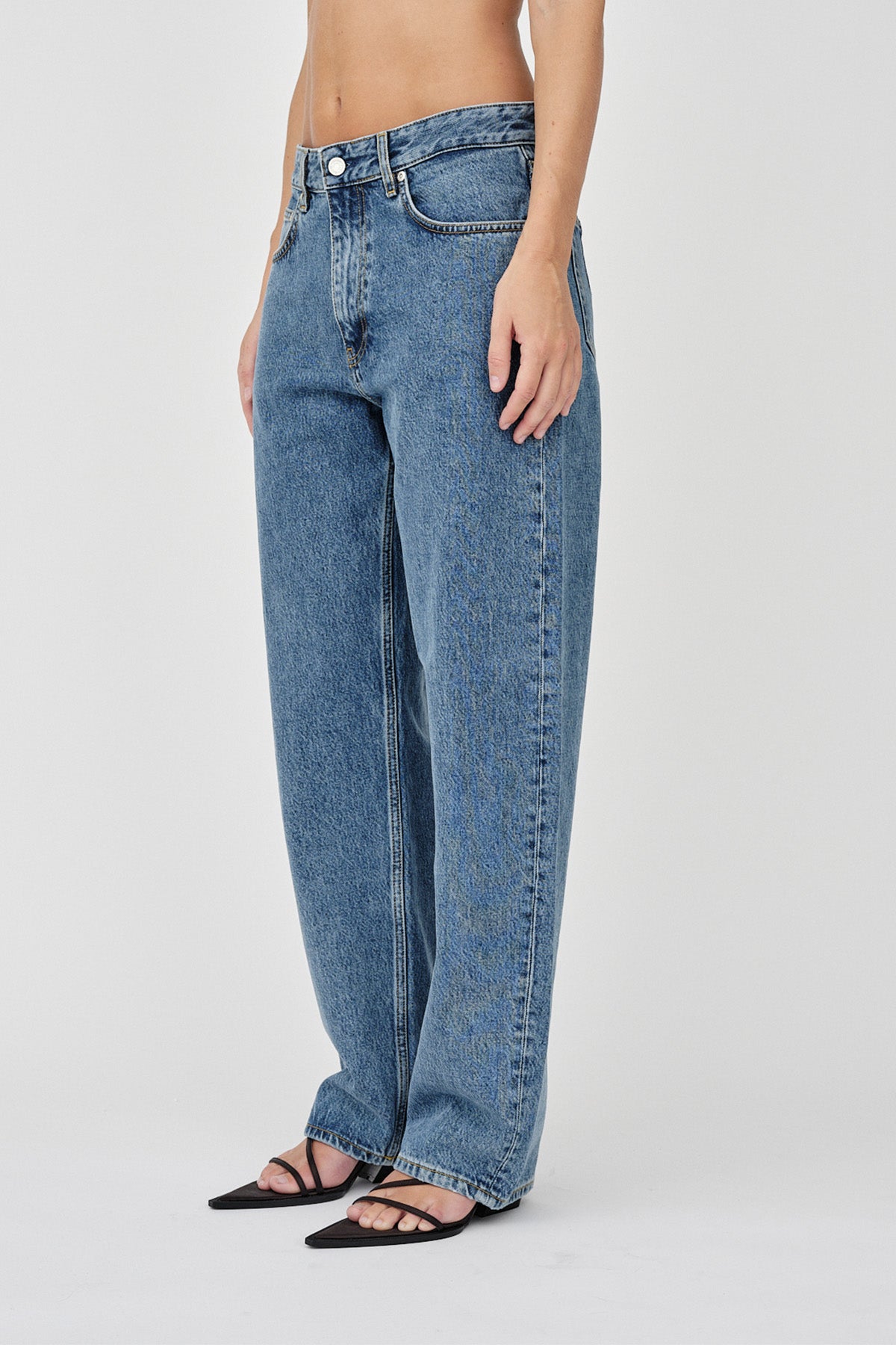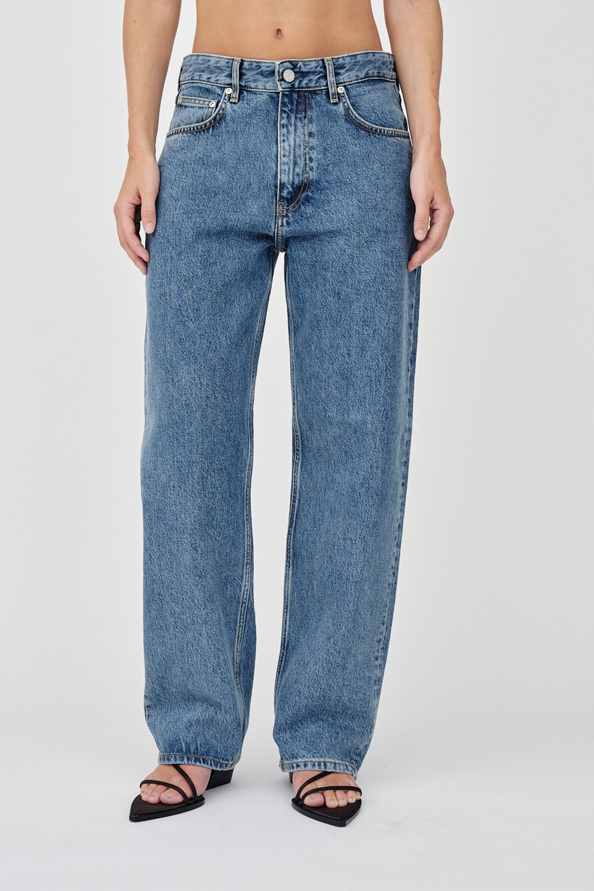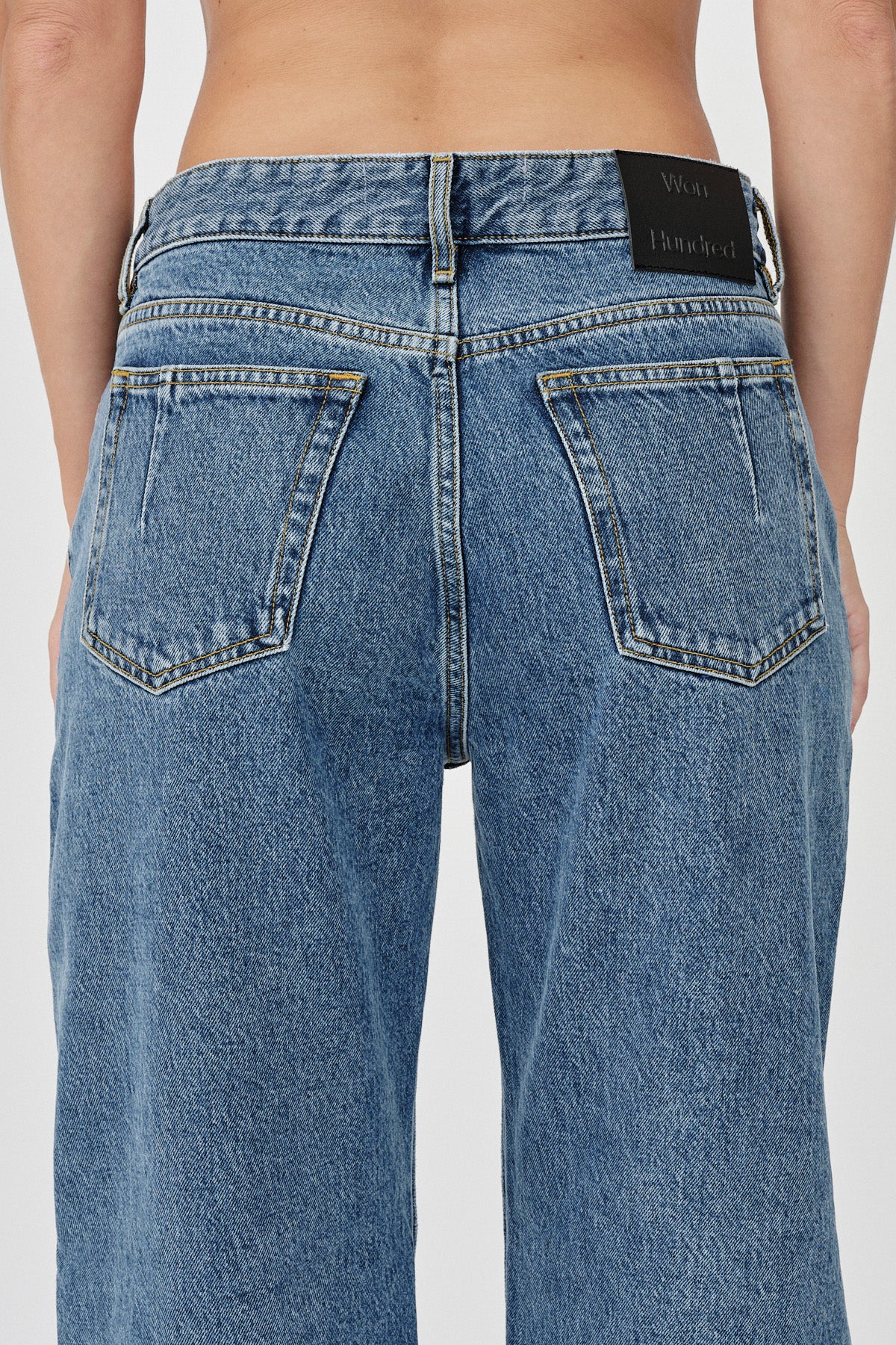 Die Alexandra Cut Blue Jeans von Won Hundred ist eine gerade geschnittene Jeans mit leicht ballonförmiger Passform, mittlerer Bundhöhe und normaler Beinlänge. Charakteristische Details wie Logo-Knöpfe, Lederlabel und die typischen Abnäher-Naht auf den Gesäßtaschen verleihen der Jeans den unverwechselbaren Won Hundred-Look.