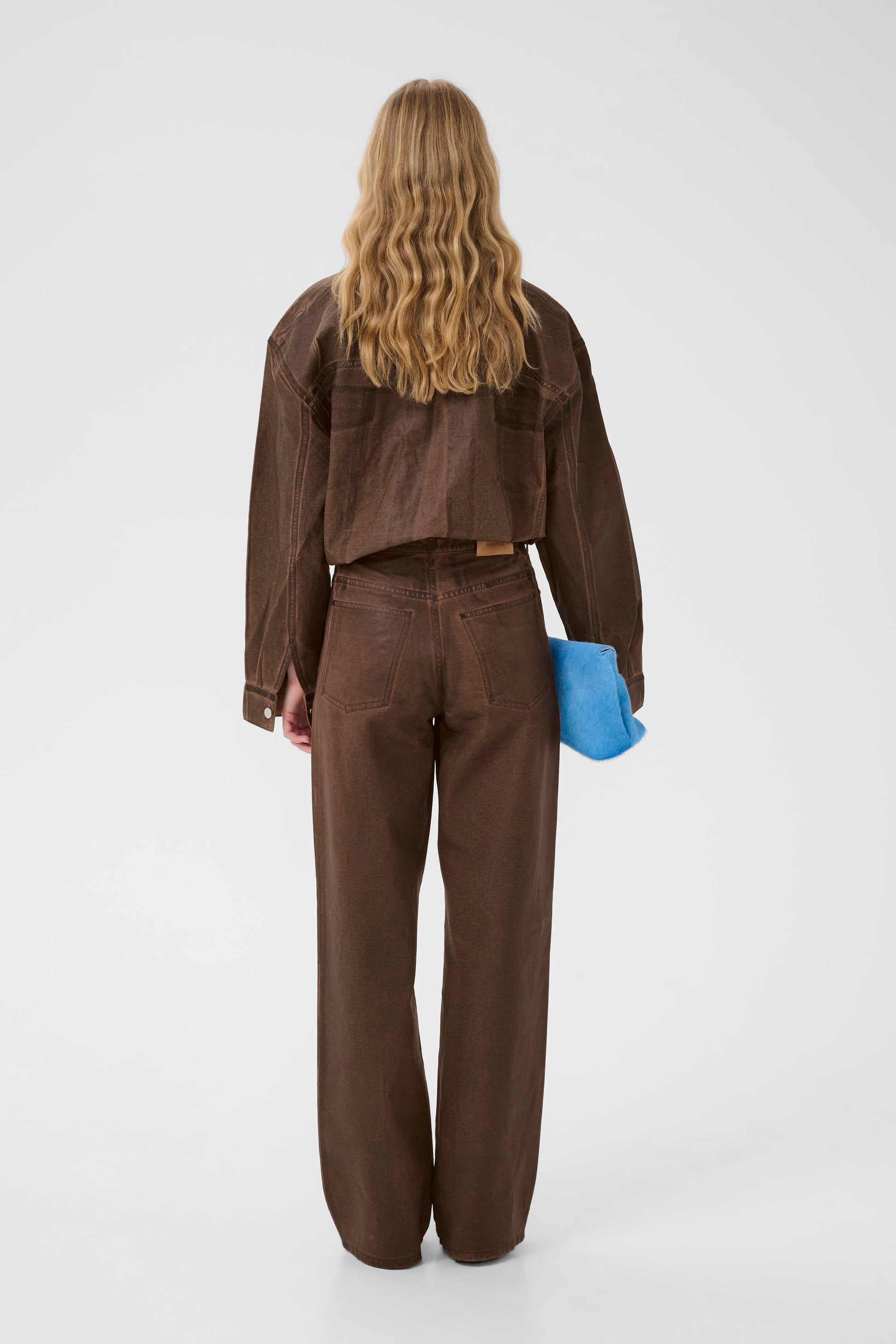 Die GZcellie Wide Jeans führt fort, was die Jacke beginnt – markante Workwear-Ästhetik, modern interpretiert. In derselben tiefbraunen Dachshund-Nuance entsteht ein monochromes Statement, das weich aussieht, aber Präsenz zeigt. Der Stoff wirkt durch sein leicht glänzendes Finish besonders edel und bewegt sich kraftvoll, ohne an Leichtigkeit einzubüßen. Der weite, lang fallende Schnitt erzeugt eine lässige Säulenform: elegant gestreckt, fließend und architektonisch clean. Klassische 5-Pocket-Details und sichtbare Nähte bleiben zeitlose Referenz, während die Farbe und die Silhouette die Denim-Hose in ein Fashion-Piece verwandeln. Ob im Set mit der GZcellie Jacket oder als Solostar – diese Hose tritt auf, ohne laut werden zu müssen.