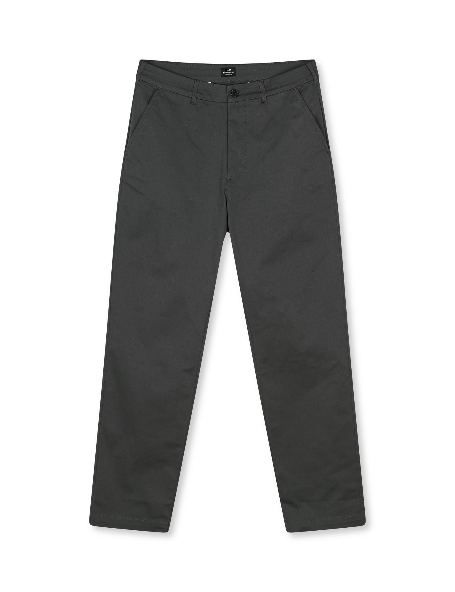 Die Cotton Twill Stretch Elias Pants in Asphalt von Mads Nørgaard sind klassische chinos mit modernem Twist: gefertigt aus weichem Stretch-Twill, bieten sie angesagten Alltagstragekomfort. Die Regular-Fit-Passform mit geraden Beinen schafft eine zeitlose Silhouette. Eine feste Bundlösung mit Reißverschluss, Knopf und Gürtelschlaufen sowie seitliche Einschubtaschen und Paspeltaschen auf der Rückseite runden das praktische Design ab. Styling made easy.