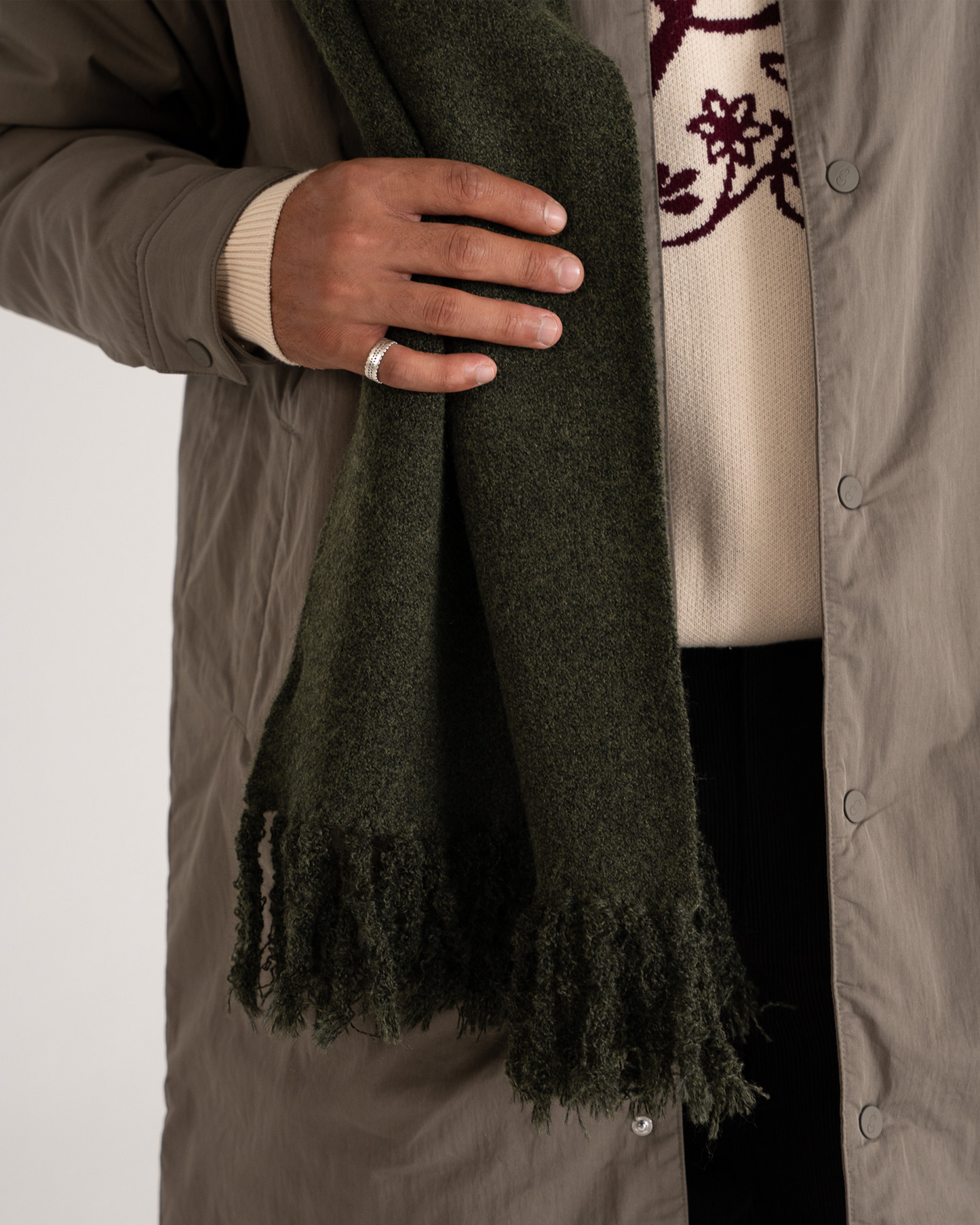 Der Legacy scarf von Prohibited ist ein Statement-Schal für die kalte Saison – großzügig geschnitten, weich und mit einer modernen Struktur im schweren Strick. Er besteht aus einem hochwertigen Materialmix, der Wärme und Komfort perfekt verbindet. Der lange, fließende Fall sowie der Oversized-Schnitt verleihen ihm eine relaxed-edgy Silhouette mit urbanem Appeal – ein Must-have fürs layering oder als Style-Akzent über Mäntel und Jacken.