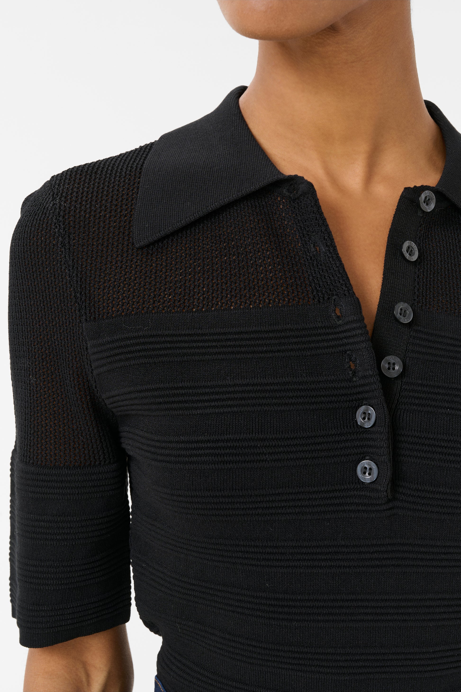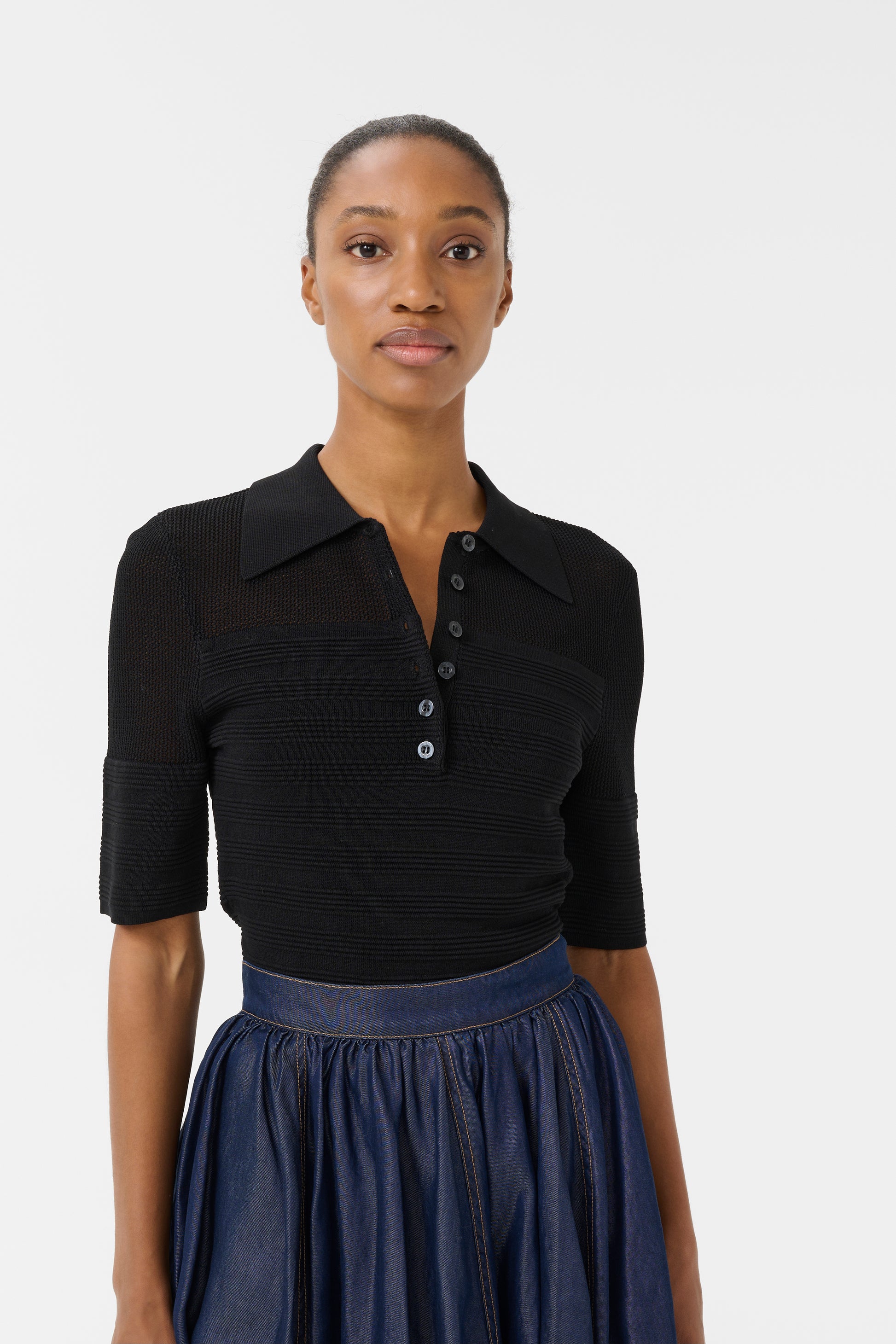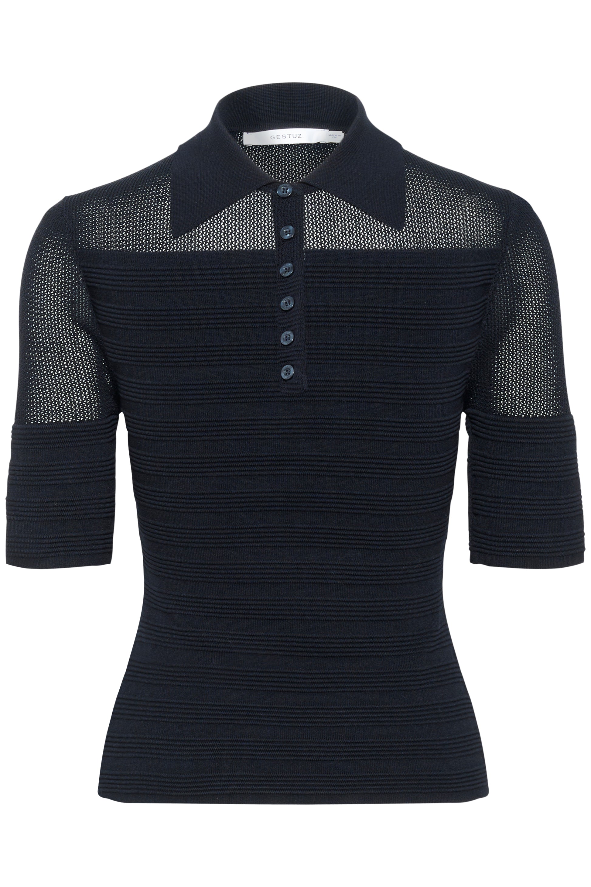 Das Magny Top von Gestuz ist ein feminines Essential mit moderner Eleganz. Gefertigt aus einer soften Mischung aus 65% Viskose und 35% Polyamid, sitzt es angenehm auf der Haut und bietet gleichzeitig Formstabilität. Der Slim Fit, die kurze Länge und die halben Ärmel unterstreichen die figurbetonte Silhouette, während der Polokragen mit Knopfleiste dem Top eine klassische, zugleich moderne Note verleiht. Ein vielseitiges Piece, das sich sowohl chic als auch casual stylen lässt.