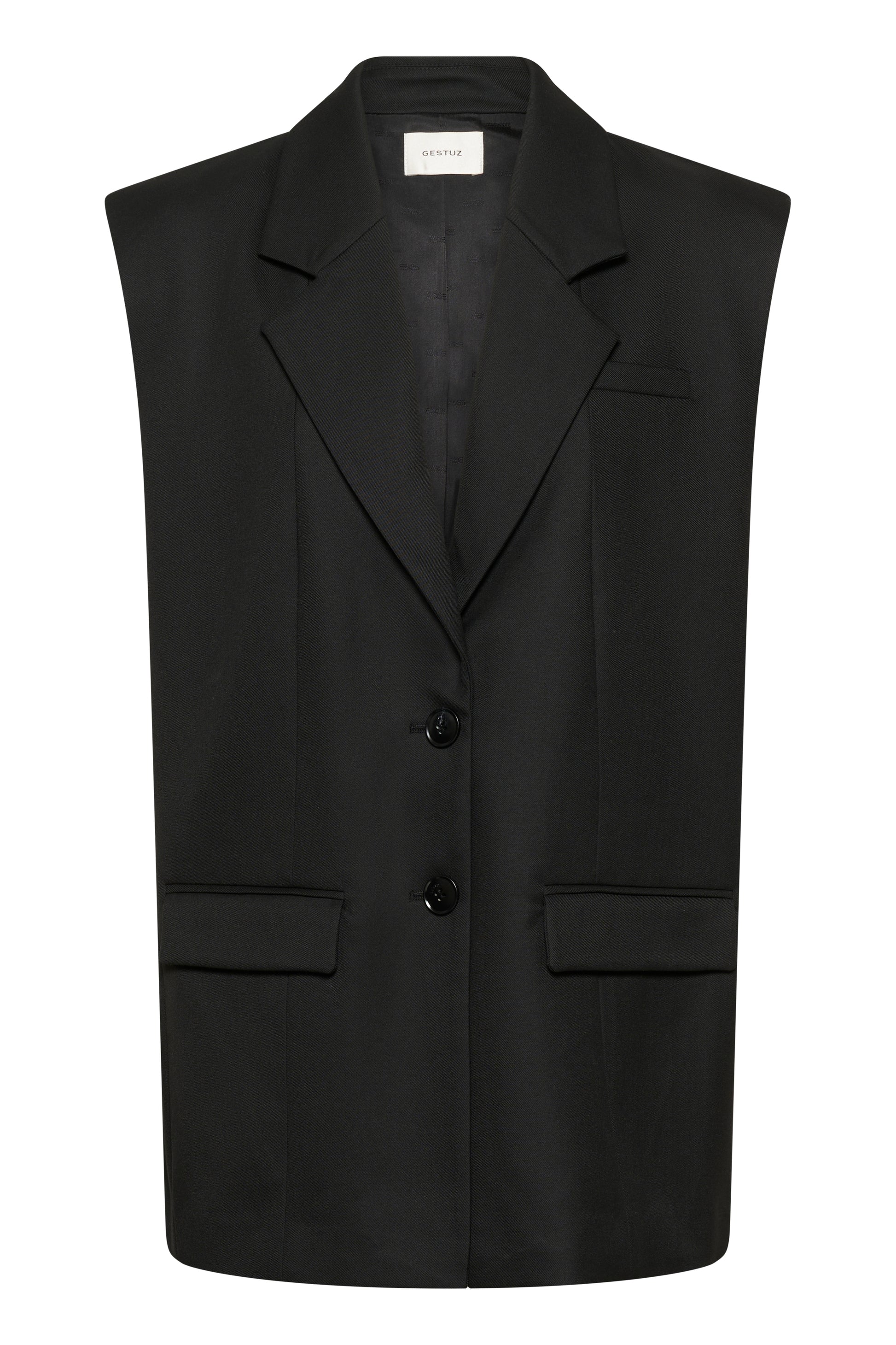 Der recycelte Polyester-Viskose-Mix trägt sich weich und strukturiert zugleich, hält Form, bleibt leicht, bleibt präsent. Ob als Suit-Komplettlook zu den GZpaula Pants oder als Powerlayer über Denim – diese Weste ist das Piece, das Outfits fertig denkt.