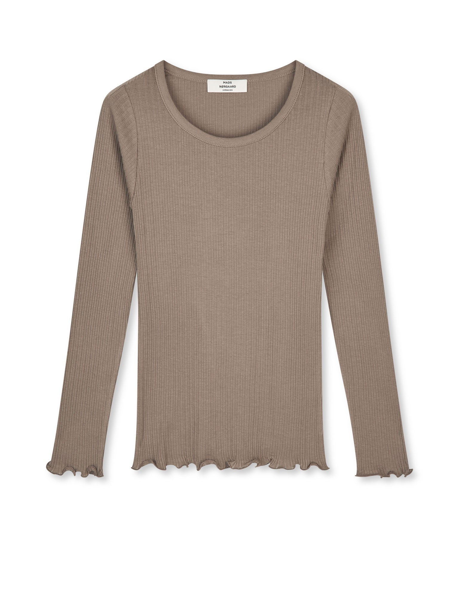 Das Pointella Troja Tee von Mads Nørgaard Copenhagen ist ein feminines, langärmliges Shirt mit subtilem Pointelle‑Strickmuster und sanften, wellenförmigen Kanten. Die feine Struktur und der schmeichelnde Fit machen es zu einem vielseitigen Essential für stilbewusste Alltags‑Looks.