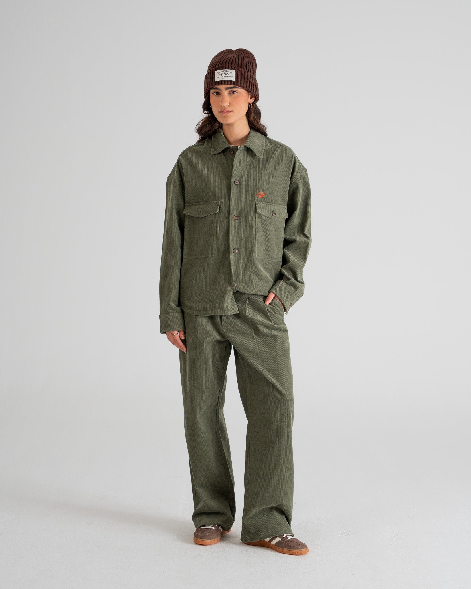Das Ranger Corduroy Overshirt von Prohibited verbindet hochwertigen Cordstoff mit modernem Streetwear-Style. Aus 100% Baumwolle gefertigt, bietet es angenehmen Tragekomfort und langlebige Qualität. Der oversized Fit sorgt für einen lässigen, entspannten Look, während die feine Cord-Textur jedem Outfit Tiefe und Charakter verleiht – ideal zum Layern oder solo tragen.