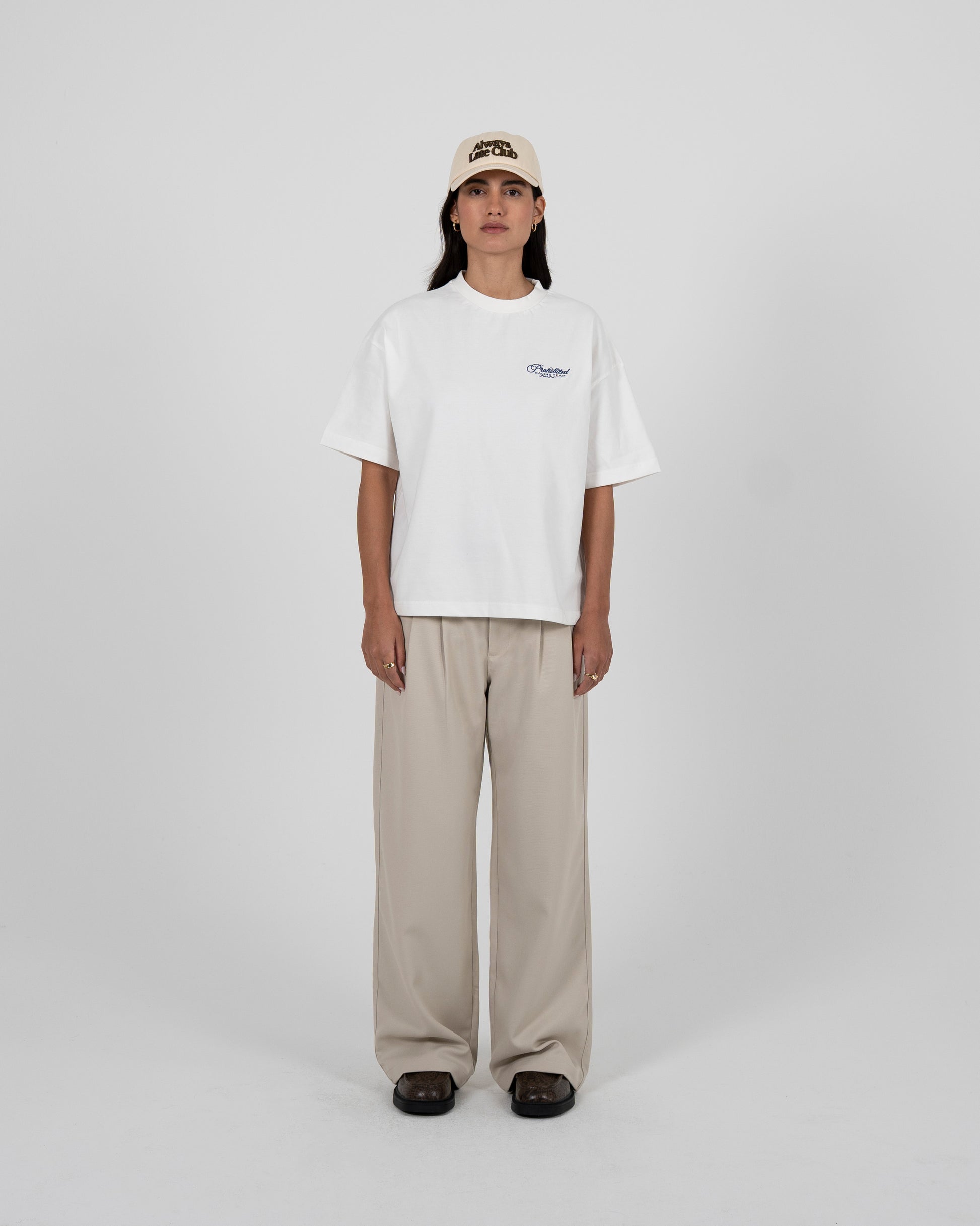 Die Redline Double Pleated Pants von Prohibited verbinden klassische Tailoring-Details mit moderner Streetwear-Ästhetik. Mit doppelten Bundfalten, lockerer Silhouette und feinen Markendetails entsteht eine Hose, die sowohl smart als auch entspannt wirkt – ideal für urbane Outfits mit Charakter.