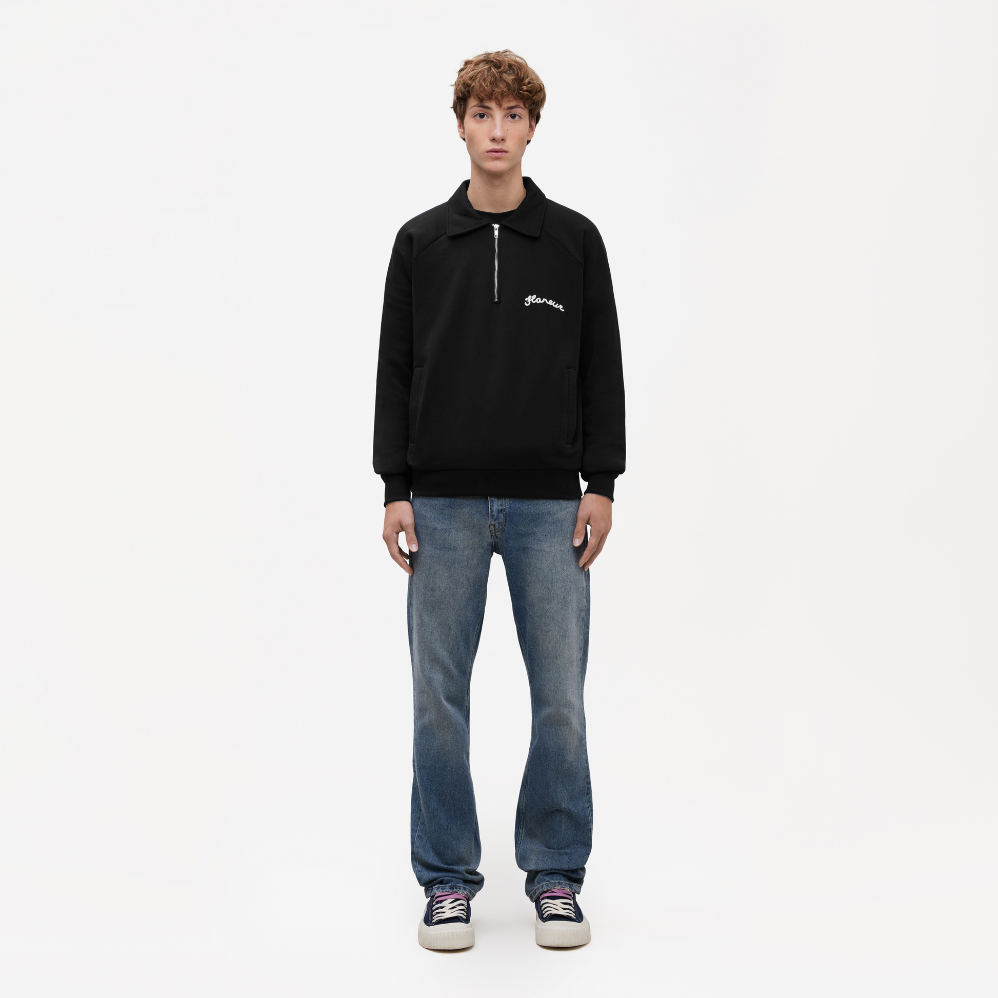 - Halbe Reißverschlussöffnung und gesticktem Logo auf der Brust