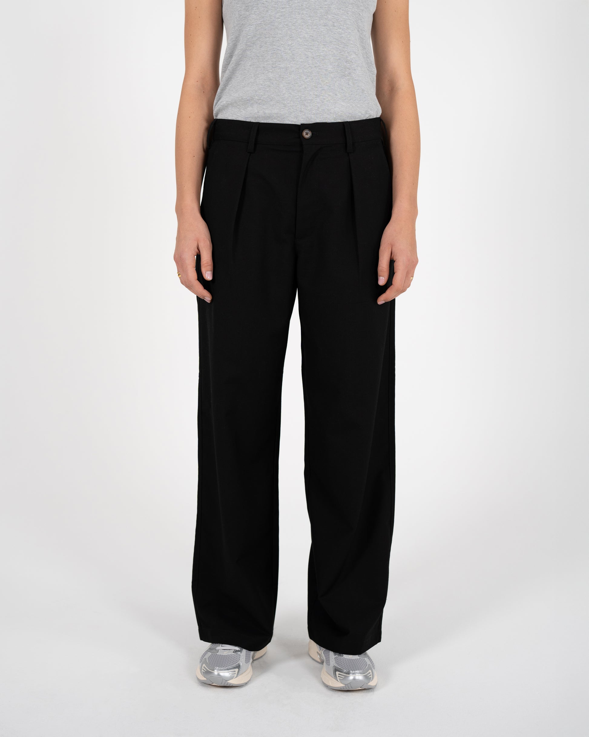 - Moderner Wide-Fit mit eleganten Bundfalten
