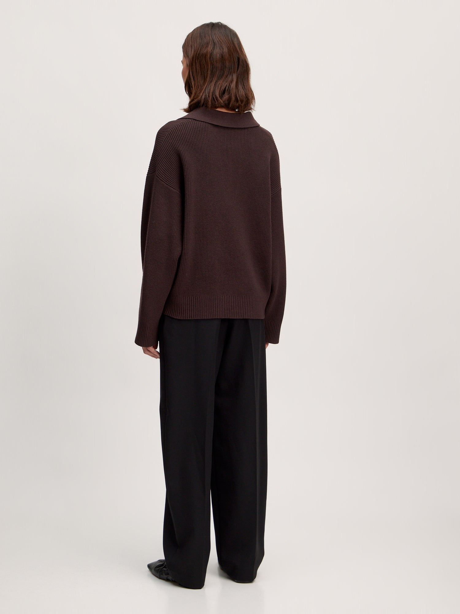 - Sanfter Kragen, feine Rippstruktur & lange Ärmel