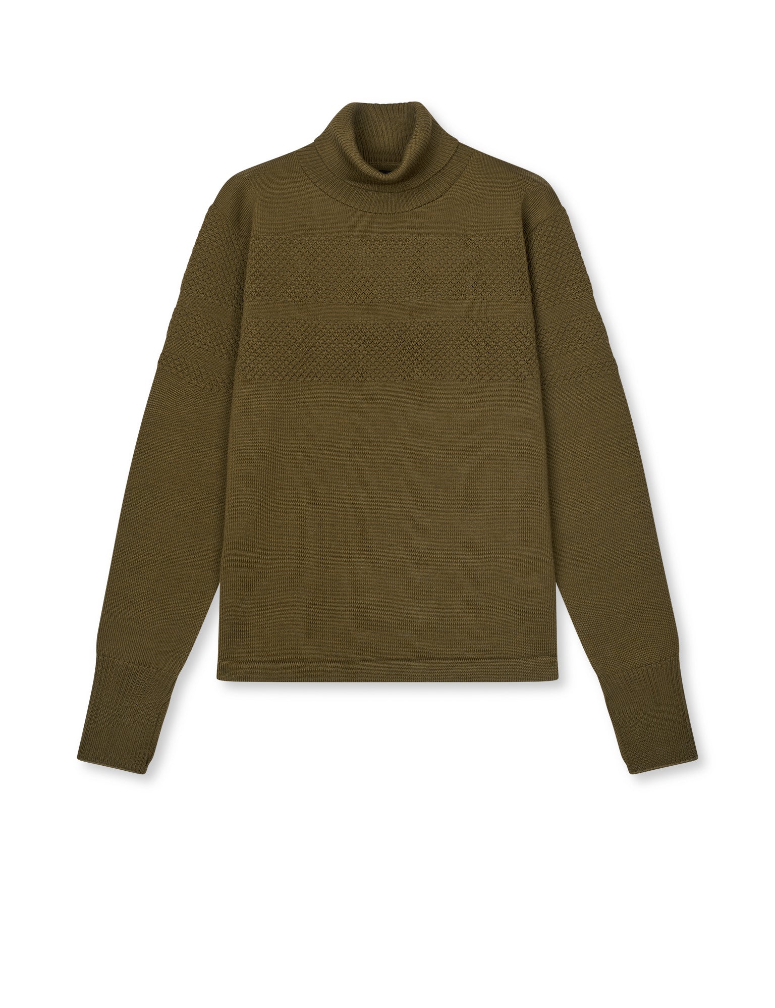 • Hoher Kragen, gerippte Kanten an Saum und Ärmeln